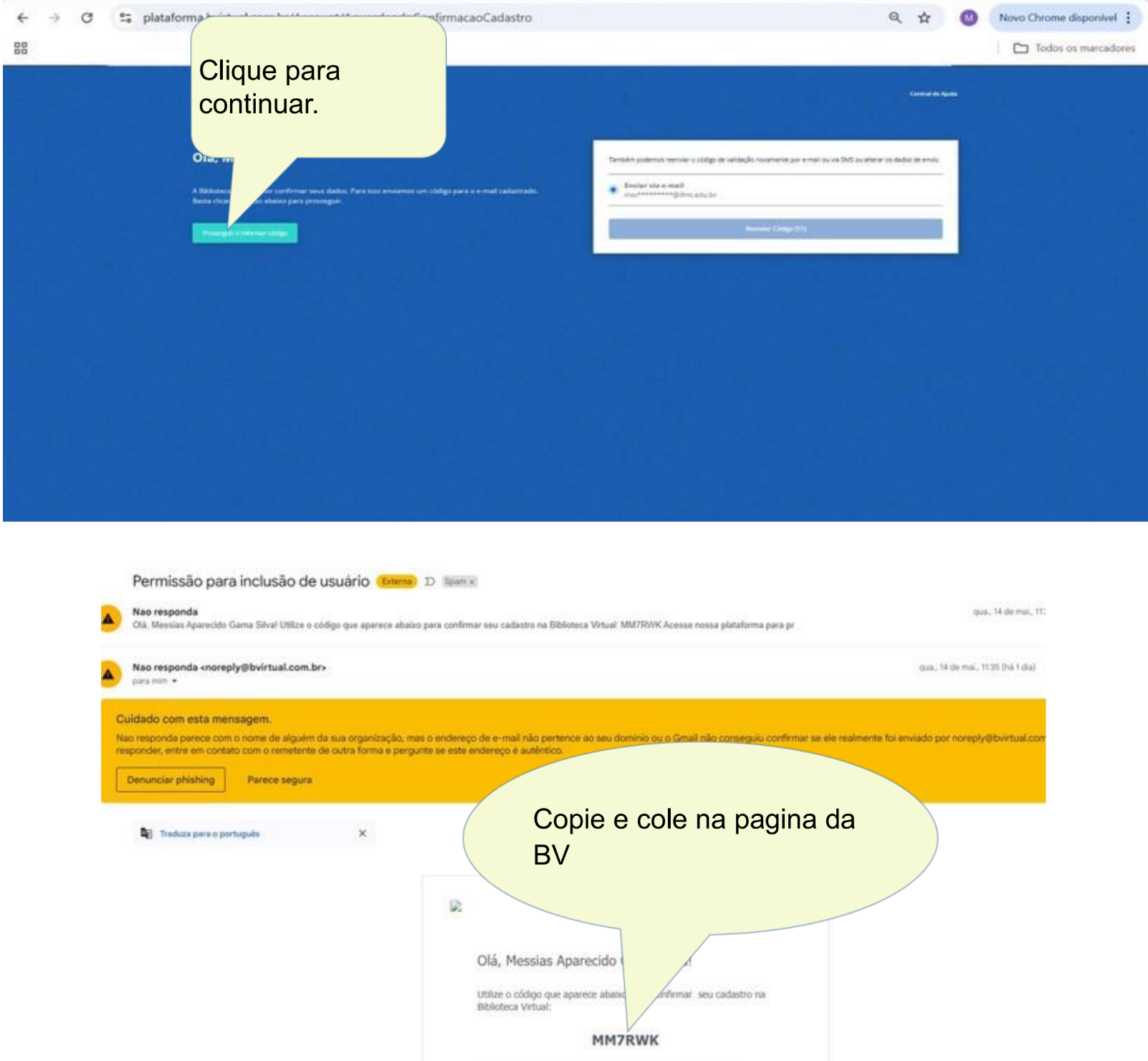 Ao informar os dados será enviado uma mensagem para o e-mail cadastrado com código de verificação. ( Geralmente está na caixa de SPAM)